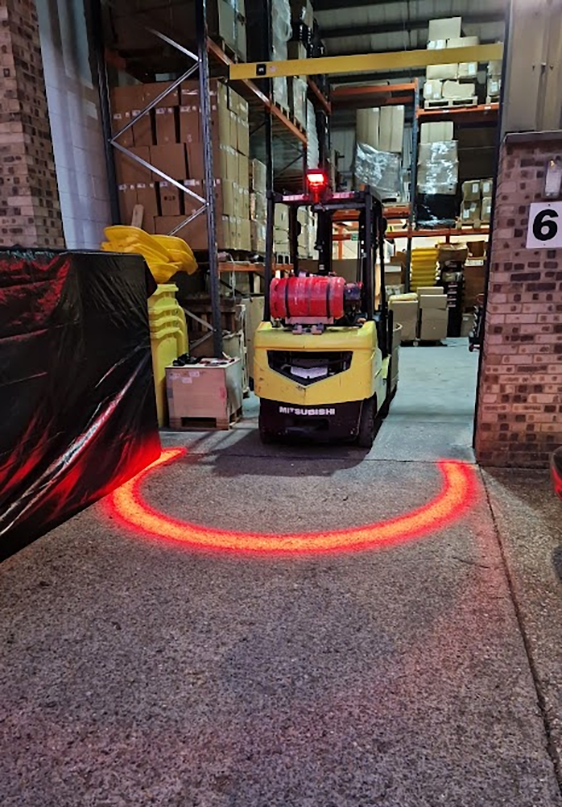 Forklift Halo is a cutting-edge LED lighting system that significantly enhances workplace safety. When installed, it projects a brightly colored line around vehicles, defining a highly visible "exclusion zone." This zone serves as a clear visual indicator for workers, pedestrians, and drivers, making safety a top priority in any environment.